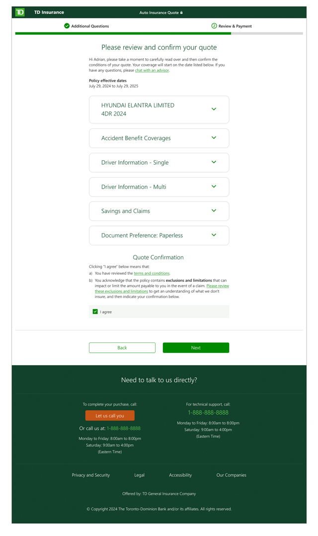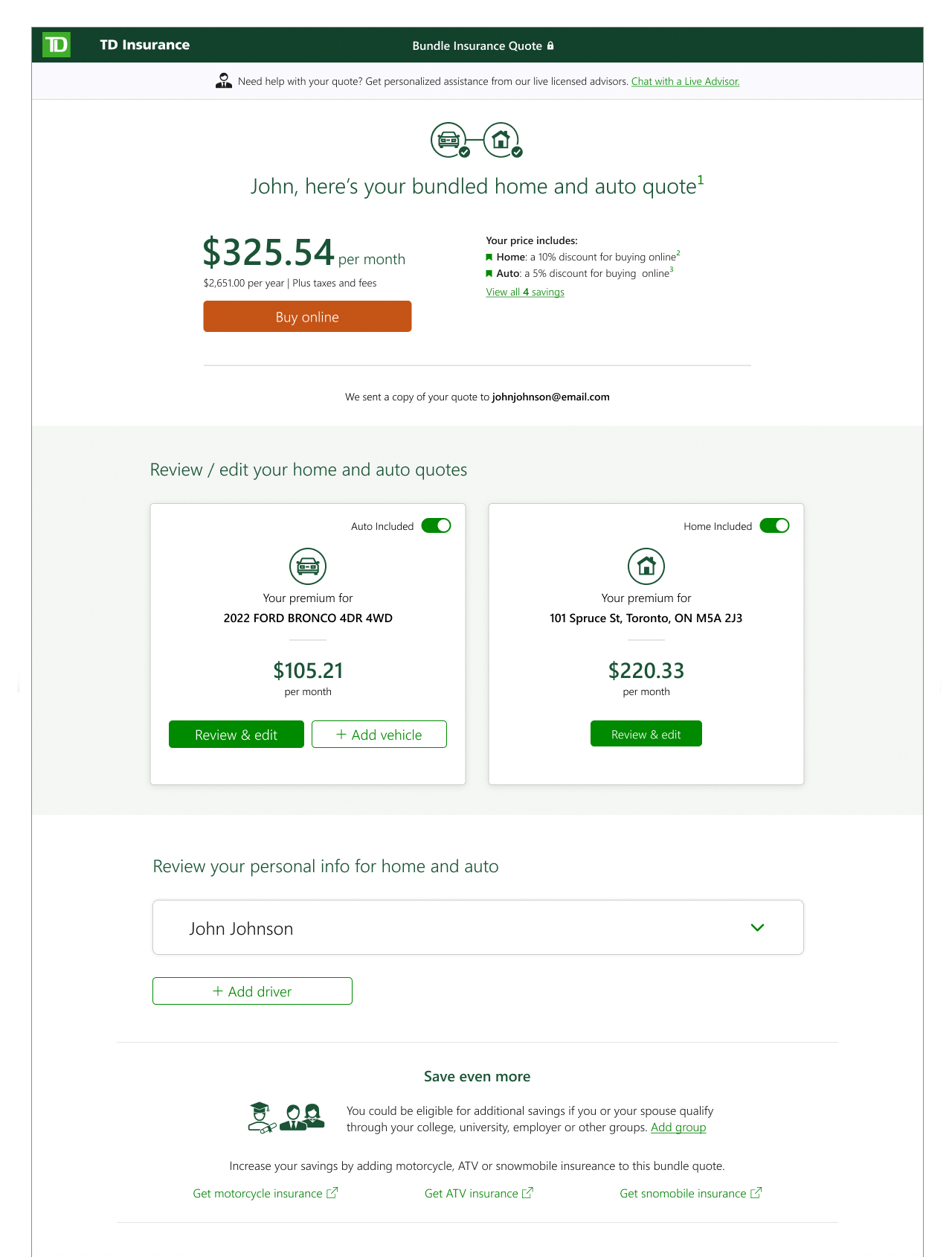 Reducing mental load wasn't always straightforward, and we turned to other approaches to chunk out the information being shown. Below are a couple of examples that represent the thinking applied throughout the TD Insurance quoters.