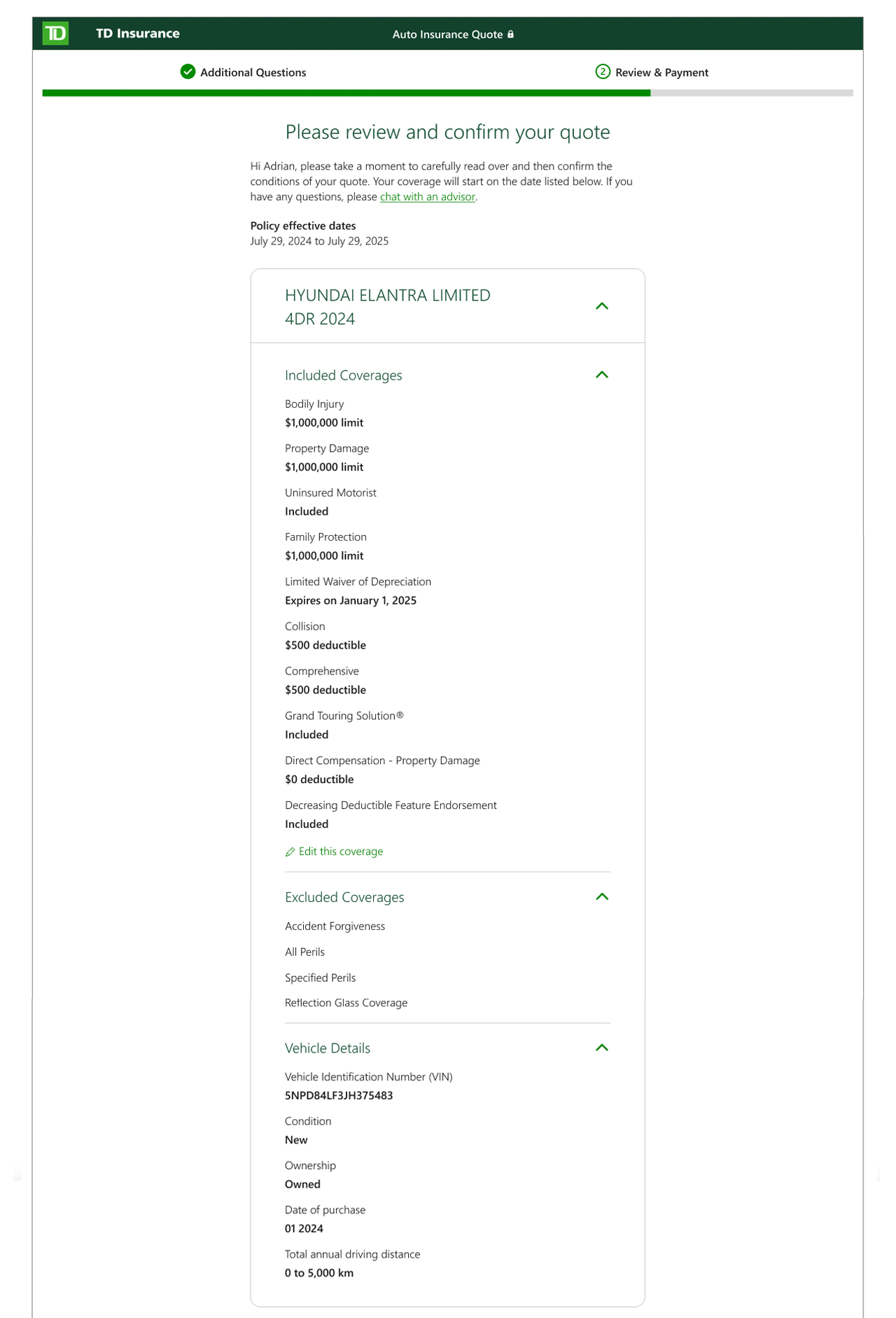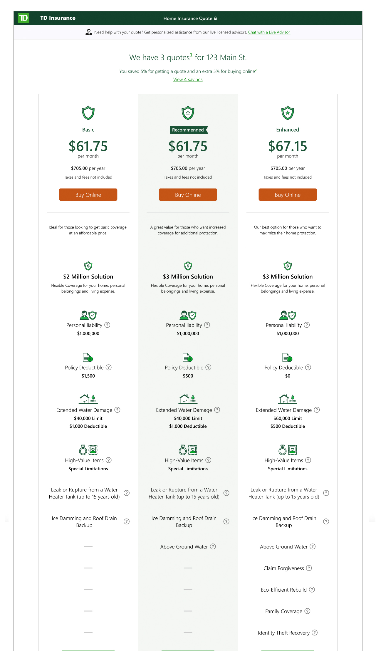 Reducing mental load wasn't always straightforward, and we turned to other approaches to chunk out the information being shown. Below are a couple of examples that represent the thinking applied throughout the TD Insurance quoters.
